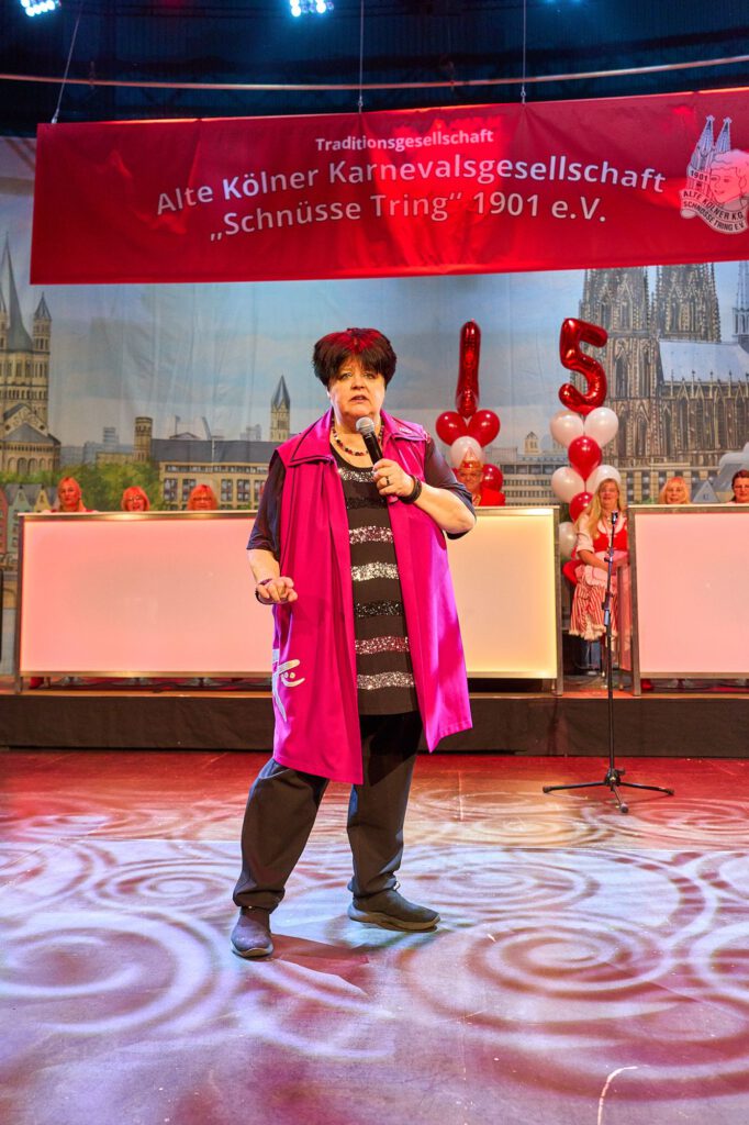 Ingrid Kühne befindet sich auf Abschiedstournee – schade für eine so talentierte Rednerin. Sie trug sich in das Gästebuch der Greesberger ein und erhielt zum Abschied einen Blumenstrauß. Mit Miljö und einem grandiosen Jörg Runge „Tuppes vum Land“ ging es weiter im Programm.
