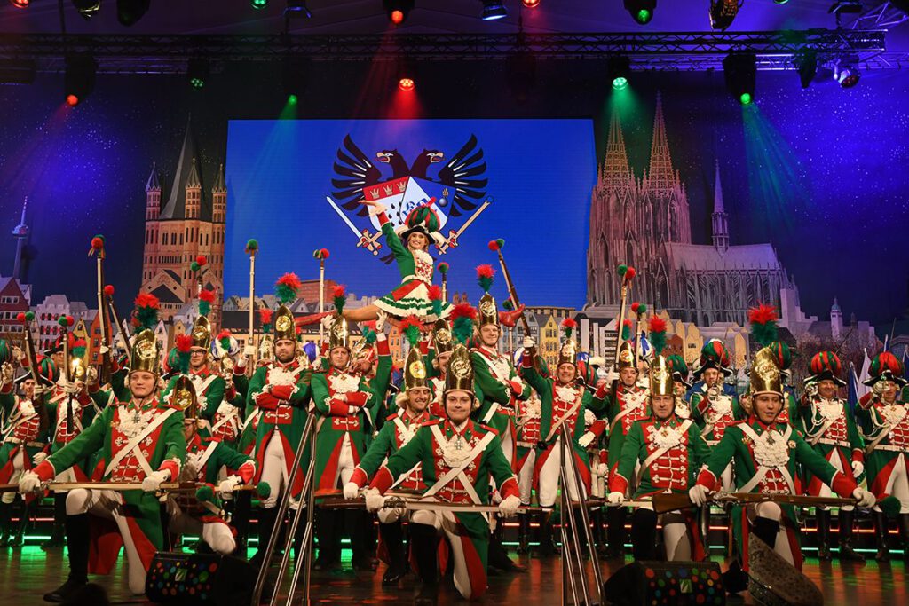 Beste Stimmung bis weit nach Mitternacht (Die Überraschung ist gelungen: Das Werbeschild des Karnevalsausstatters “Nik.Kante“ ließ beim Prinzen ein paar Tränen kullern) Das Programm mit JP Weber, “Dem Sitzungspräsidenten Volker Weininger“, Marc Metzger, der Traditionstanzgruppe “Hellige Knäächte un Mägde e.V.“ sowie viel kölscher Musik mit den Paveier und den Klüngelköpp ließ keine Wünsche offen und so schloss Blaue Funken Präsident und Kommandant Björn Griesemann die Festsitzung 2026 erst um 1:30 Uhr mit der Einladung zur anschließenden Party im Foyer.